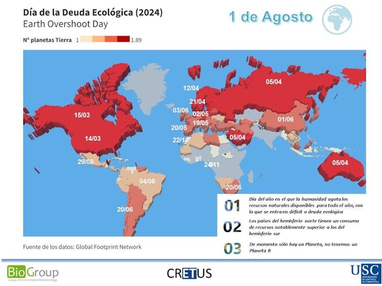 Mapa de la distribución de la deuda ecológica por países para el año 2023. Gumersindo Feijoo, CC BY-SA