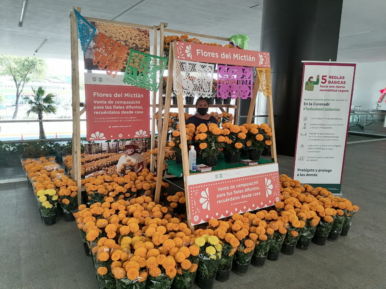 Las personas que acudan a las plazas comerciales para aquirir flores de cempasúchil deberán atender las medidas sanitarias establecidas por las autoridades, como portar cubrebocas en todo momento y de forma correcta (cubriendo nariz y boca), respetar la sana distancia de 1.5 metros entre personas y, debido a que son personas vulnerables, evitar llevar a niñas y niños menores de 12 años, así como personas mayores de 60 años, embarazadas, mujeres y hombres diabéticos, hipertensos y personas con enfermedades respiratorias.